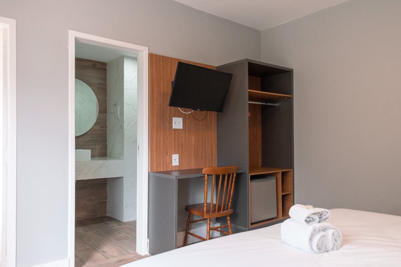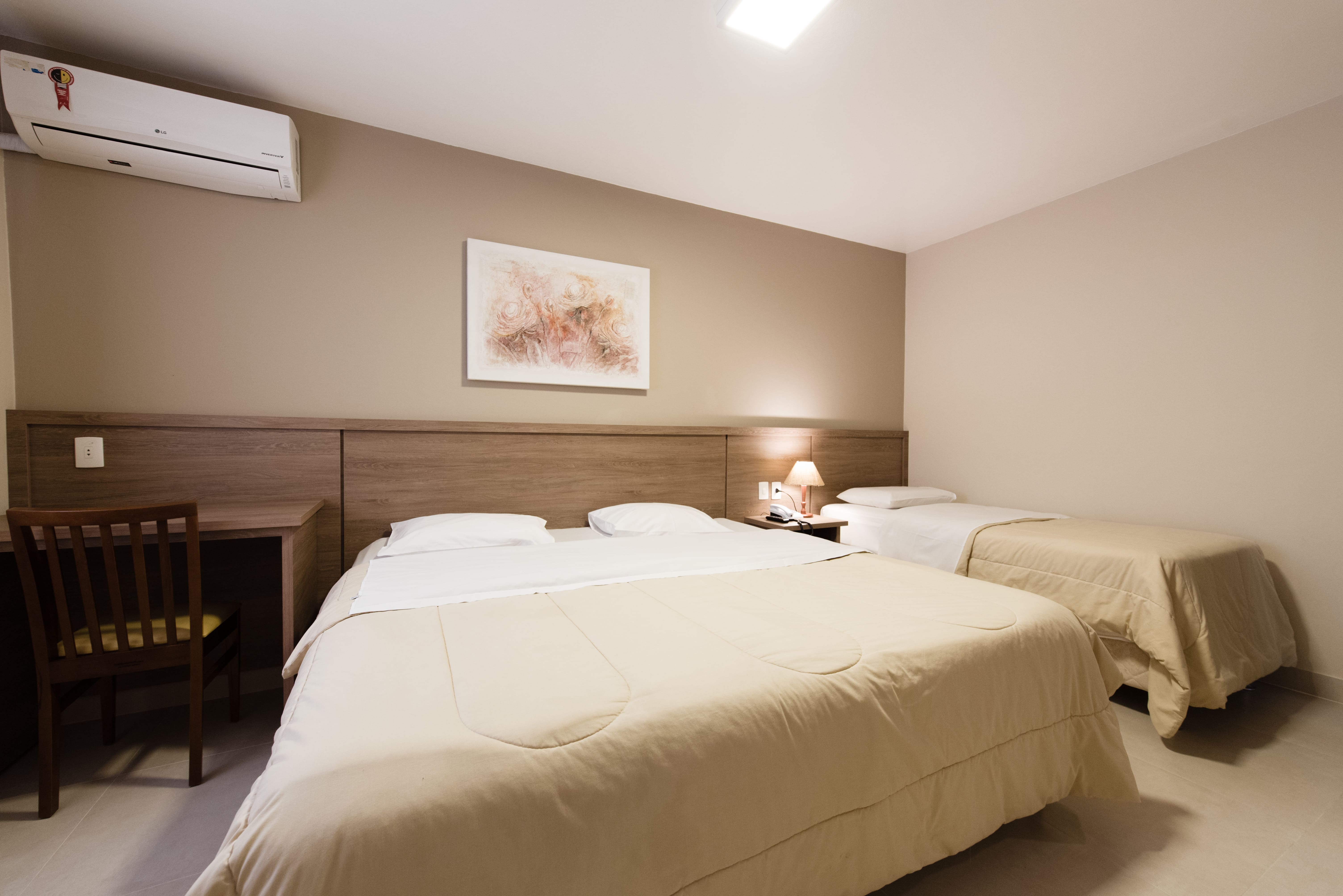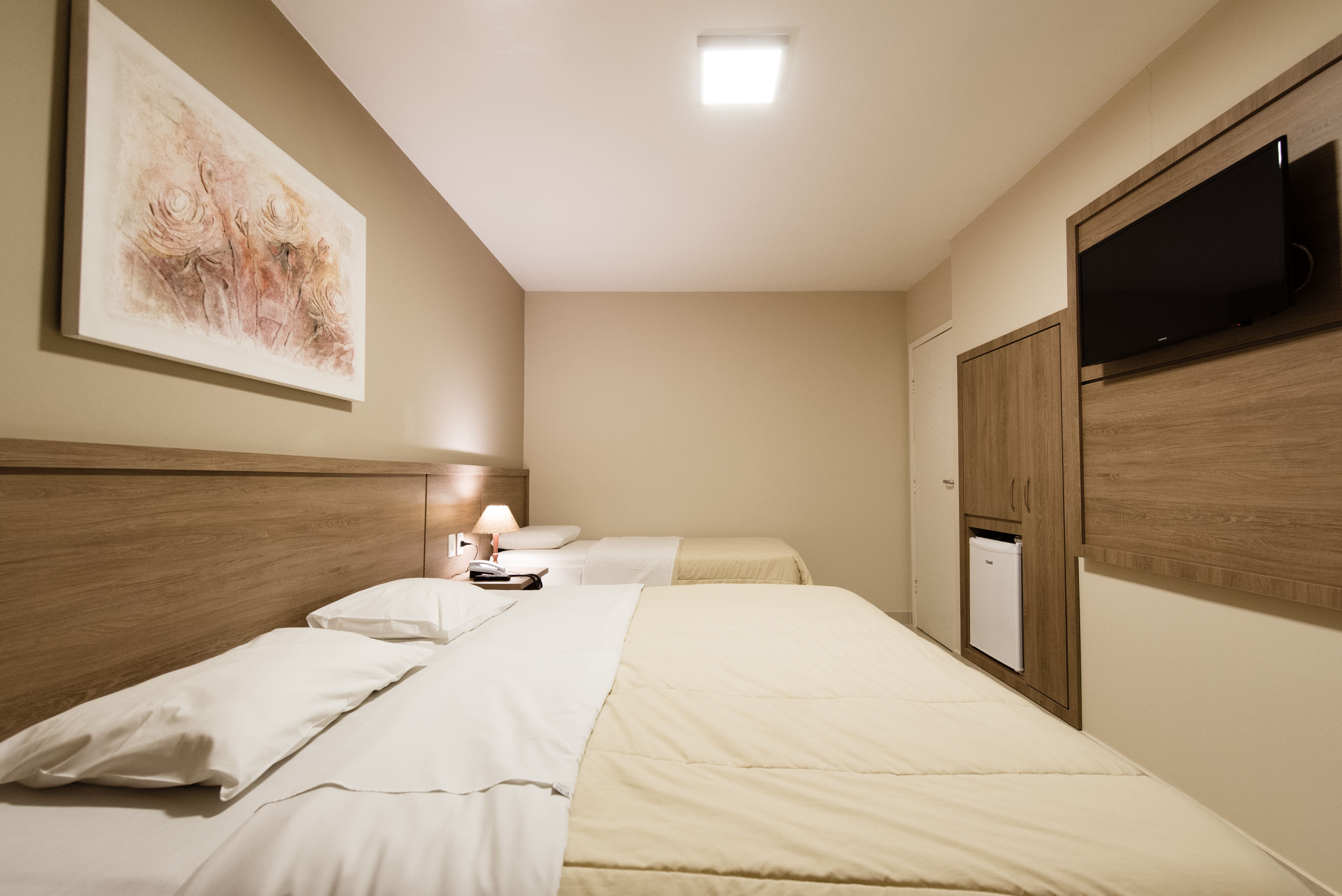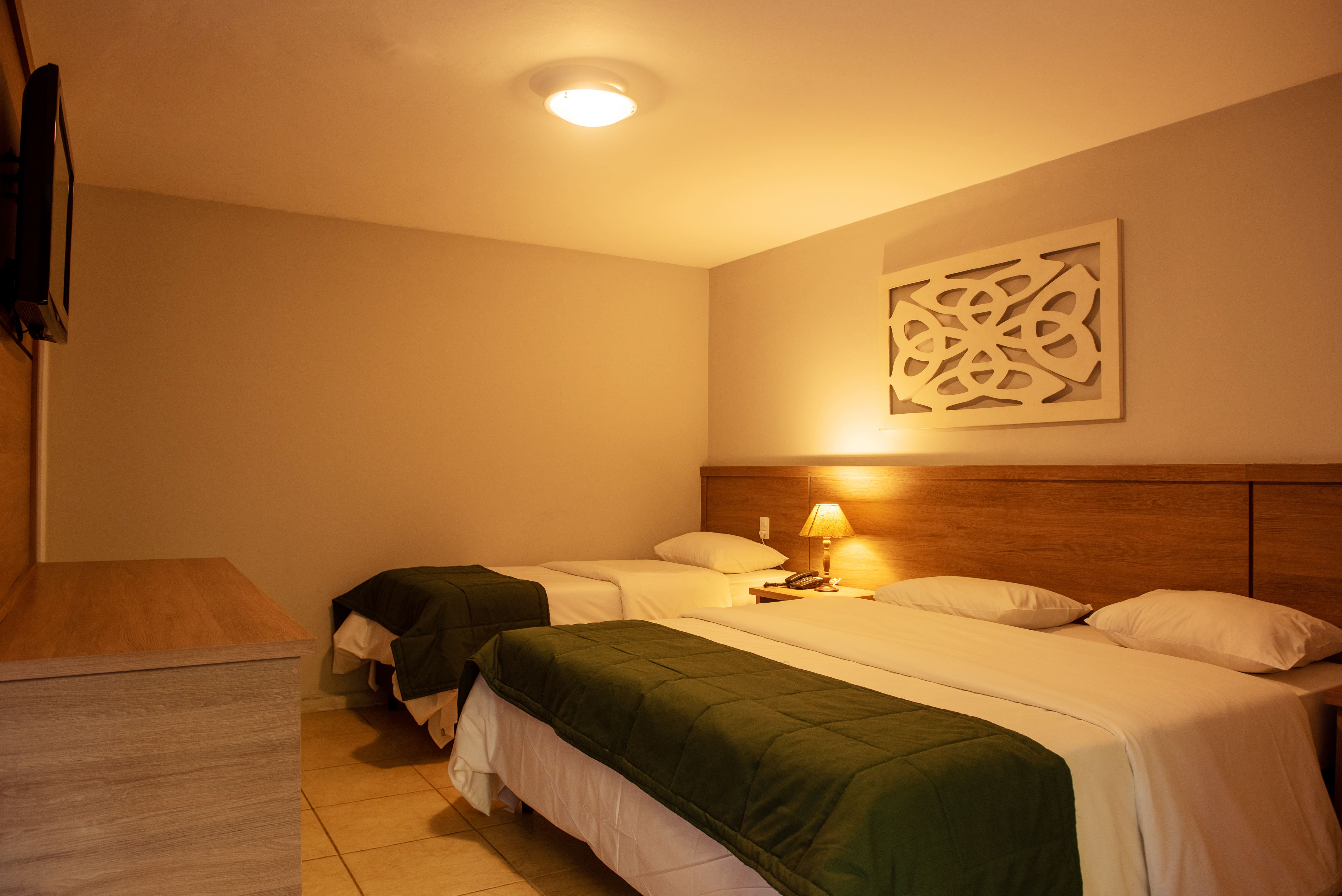 - Triplo: para até 3 hóspedes, com uma cama de casal e uma de solteiro (podendo ser bicama)