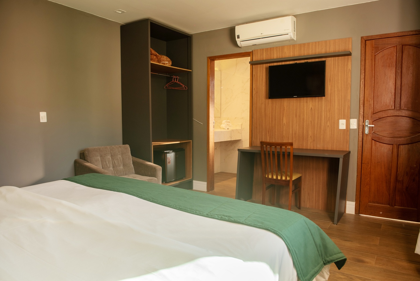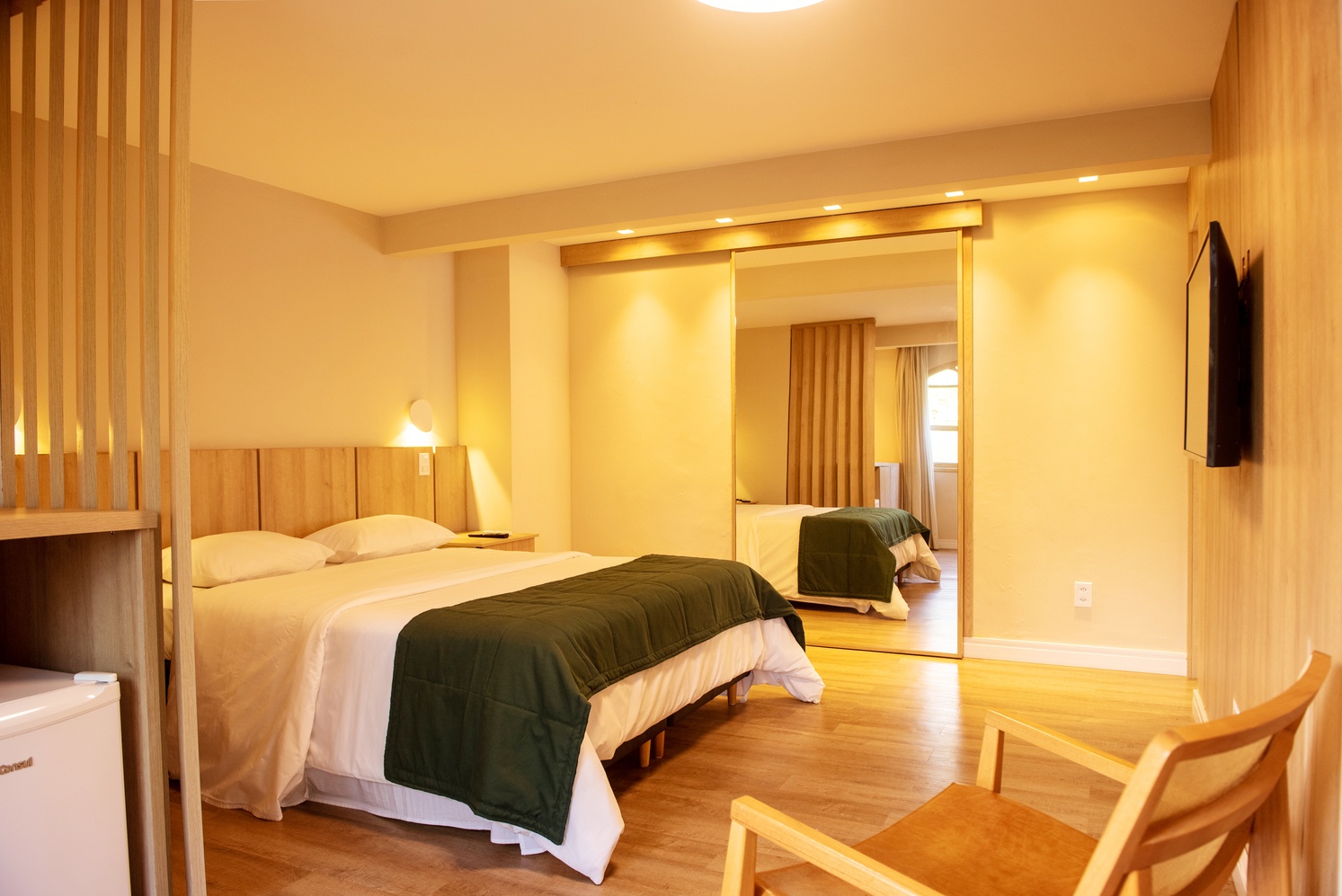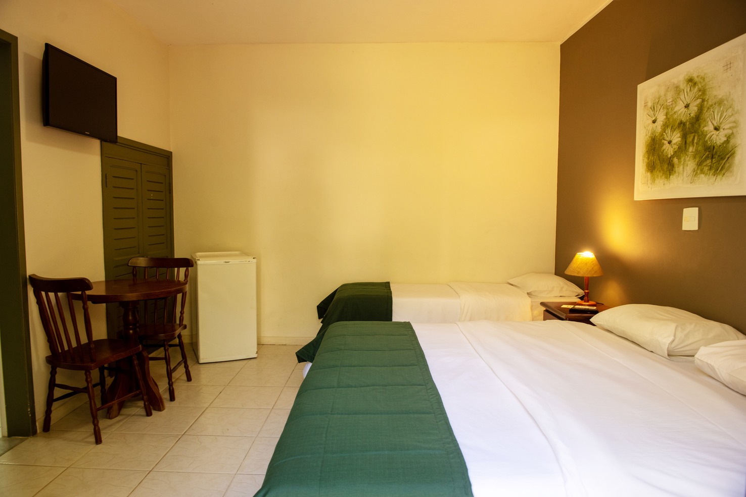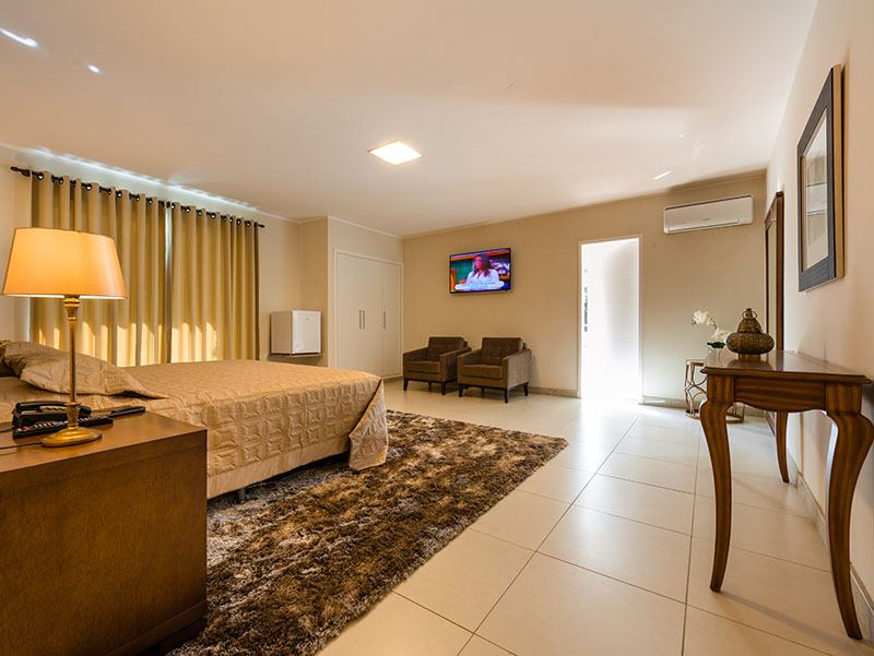 - Triplo: para até 3 hóspedes, com uma cama de casal e uma de solteiro (podendo ser bicama)