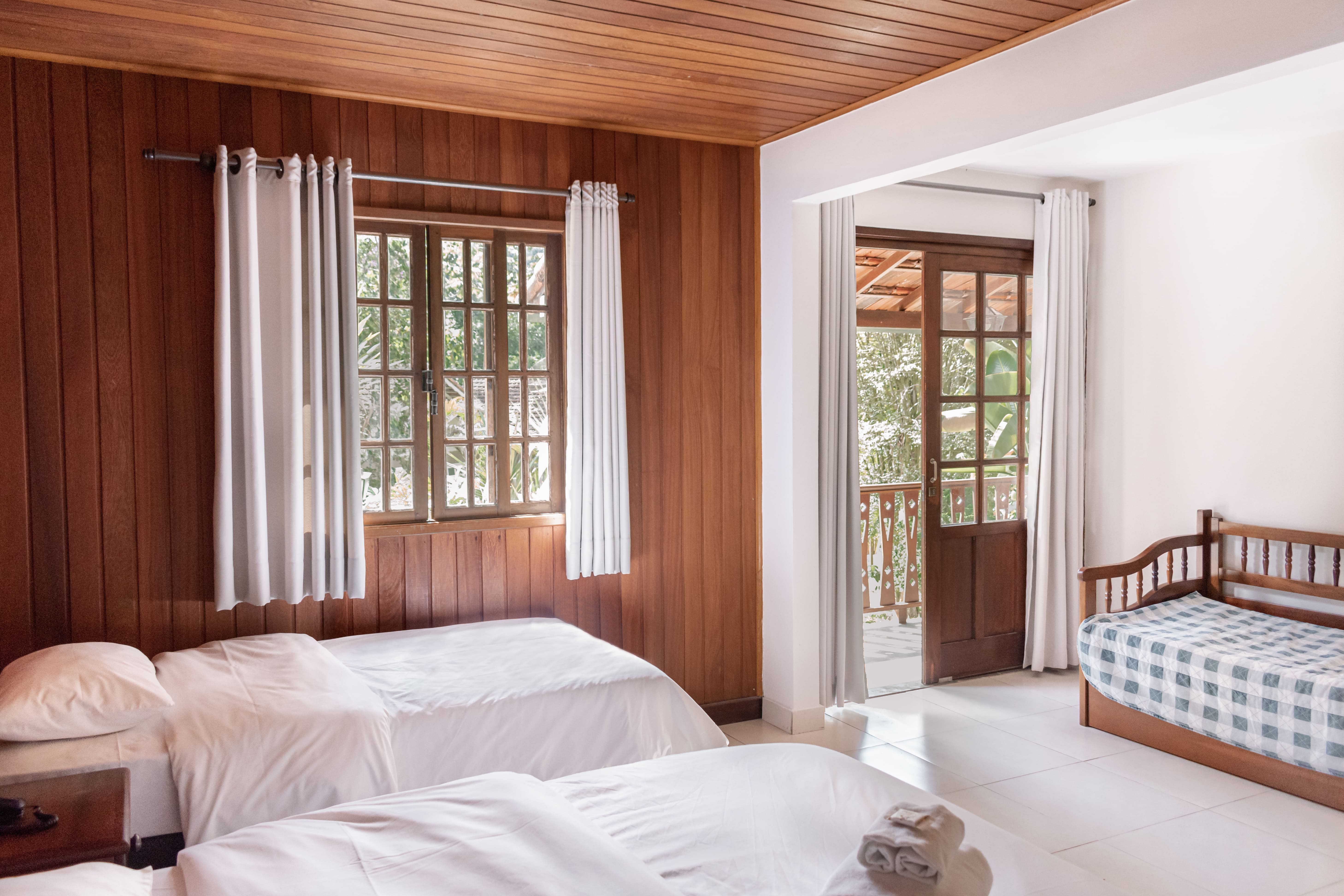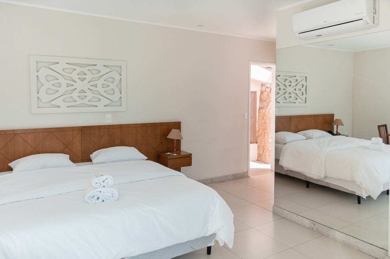 - Quádruplo: para até 4 hóspedes, com uma cama de casal e duas de solteiro (podendo ser bicama)