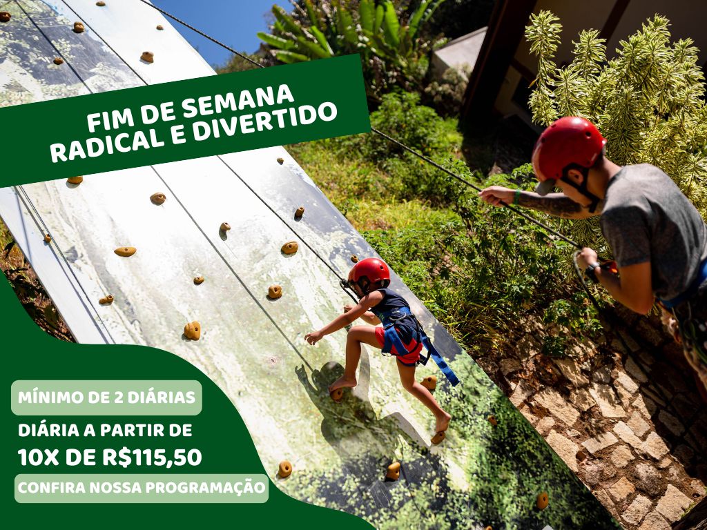 Esportes radicais: arvorismo, muro de escalada e tirolesa.